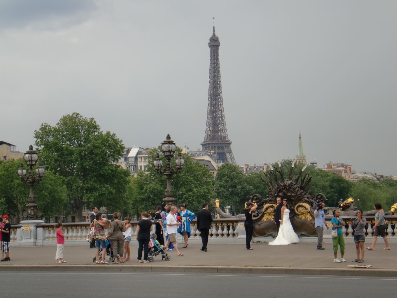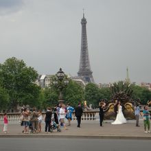 パリっ子はここをバックに結婚写真を撮るらしく、この日も撮影風景に出くわしました。セーヌ川とエッフェル塔をバックに結婚写真なんて・・・何だかカッコイイですね。