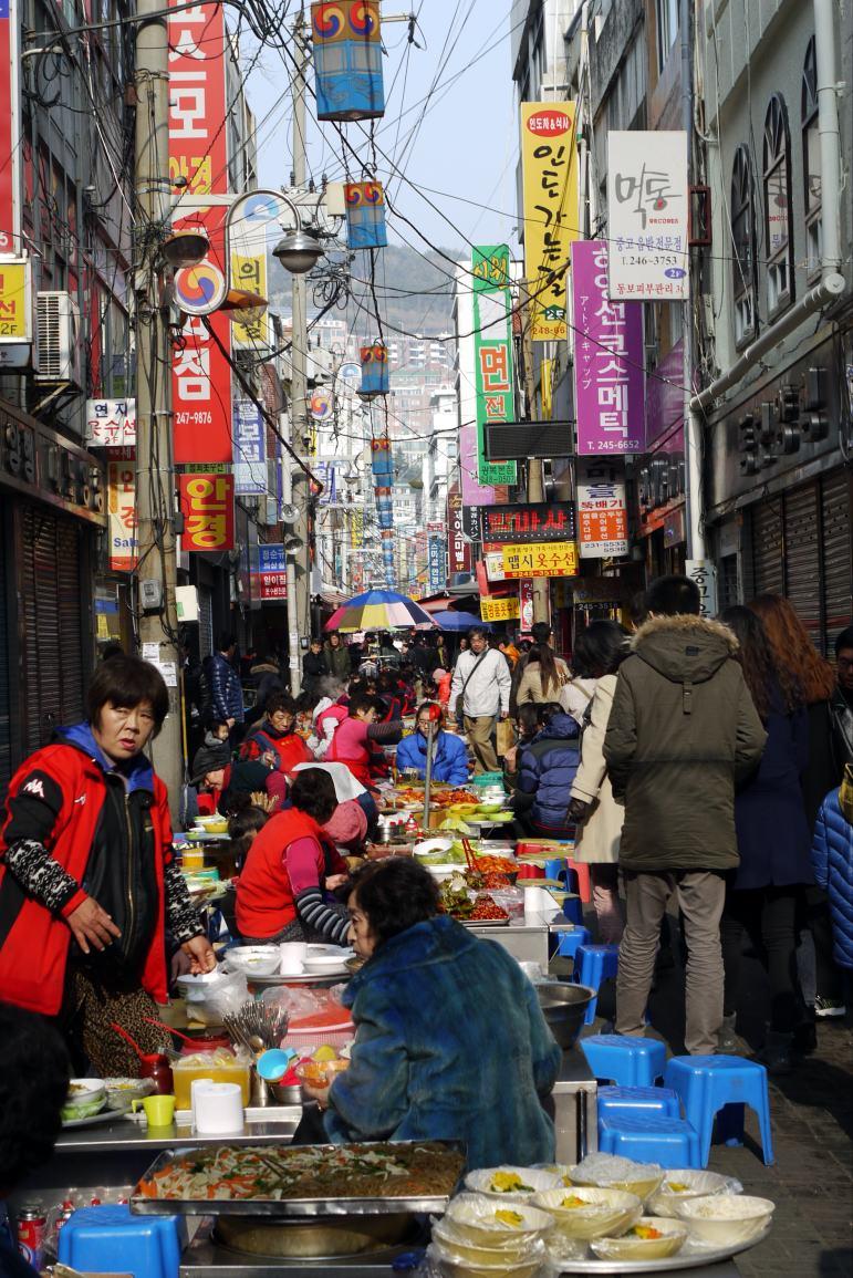 狭い路地に沢山のお店がこれでもかって云う位に商品を並べている国際市場(クッチェシジャン)には、無い物は無いって言われます。