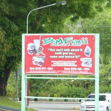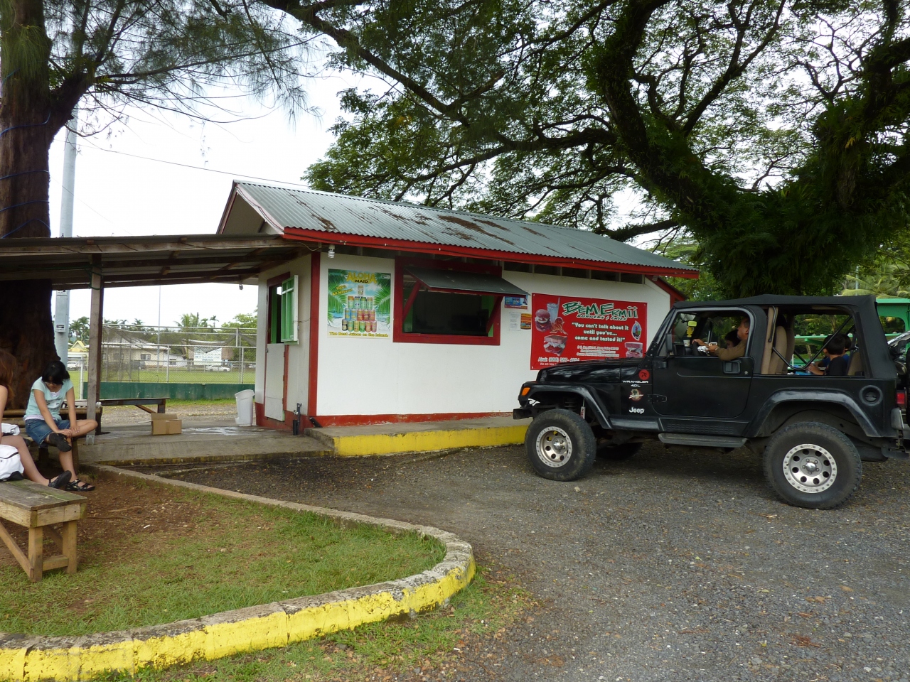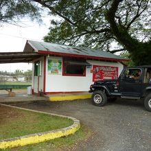 スクランブルエッグやベーコン、チーズ、トマトなどのトッピングの選択によって値段が若干UPします。お店の横には木陰のあるベンチがありますが、大量のハエがすぐよってくる(5,6匹くらい?)ためか、みな車で食べてました。