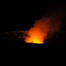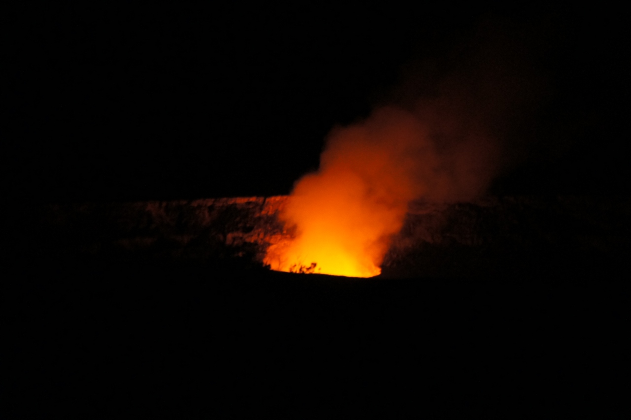 夜、噴煙に映る赤色には大地の活動を感じます。