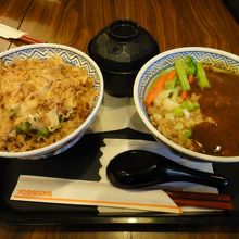 無難に牛丼か豚丼にしようかと思いましたがやっぱりご当地と思われるカレー納豆牛丼を試してみました。普通においしかったです。また、味噌汁は日本と同じ味でしたのでおいしかったです。