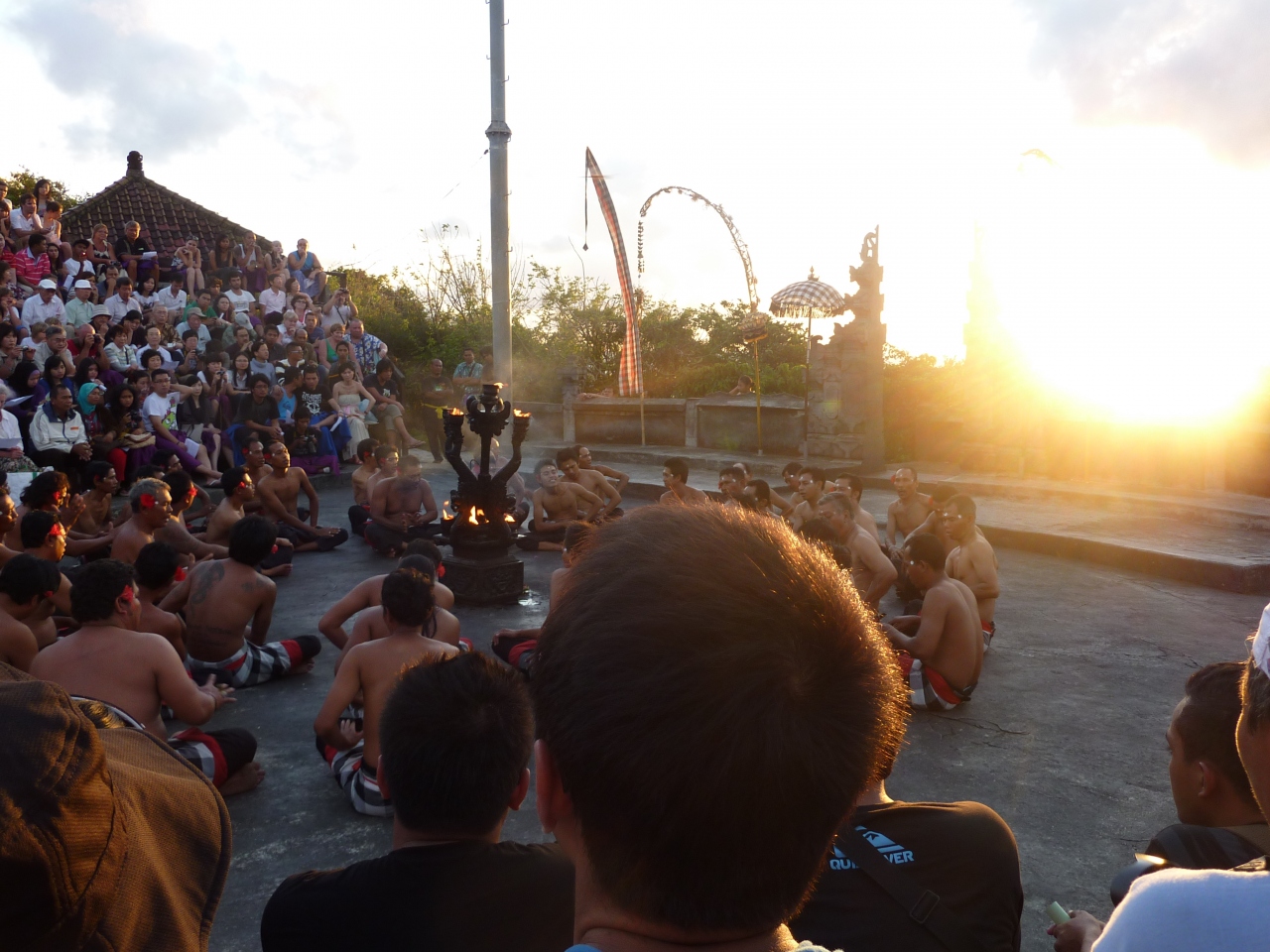 夕方にはウルワトゥ寺院で綺麗なサンセットをバックにケチャックダンスを見て、それが終わるとレストランへ移動し、また違う種類の踊りを見ながら夕食を楽しみました。