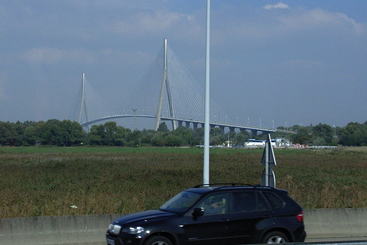 日本ではこれくらいの長さの橋はそれほど珍しくありませんが、支柱間の距離は世界でも有数な長さですが、ノルマンディー地方の強風にも絶えられるような設計になっています。