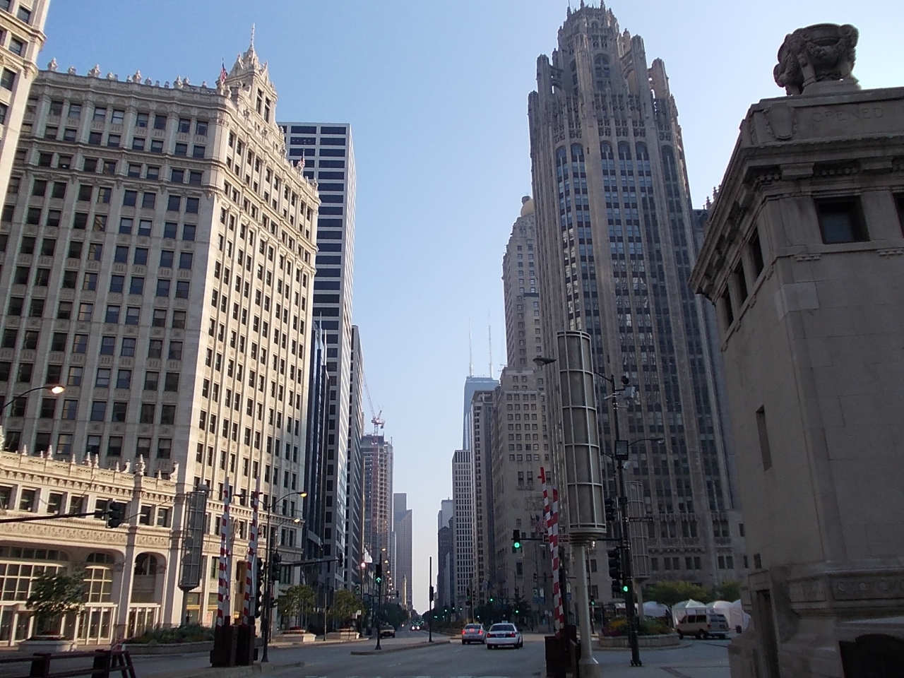 ミシガンアベニューブリッジの袂に、白亜のリグレービルと双璧を成して聳え立つ、シカゴを代表するビルですが、ここは新聞社のビルということも関係して、世界中の有名な建築の一部が壁面に埋め込まれている、という面白さもありますので見逃せません。ただ、ピラミッドとかノートルダム寺院とか、ホワイトハウスとか、有名な建築の一部って、勝手に持ち出して良いのかしら?もしかして新聞記者の特権を利用して?!などと、色々と想像も膨らみました(笑)。