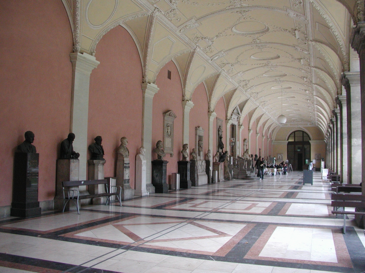 大学構内のフロイト、ブルックナー等の胸像が並ぶ知的空間