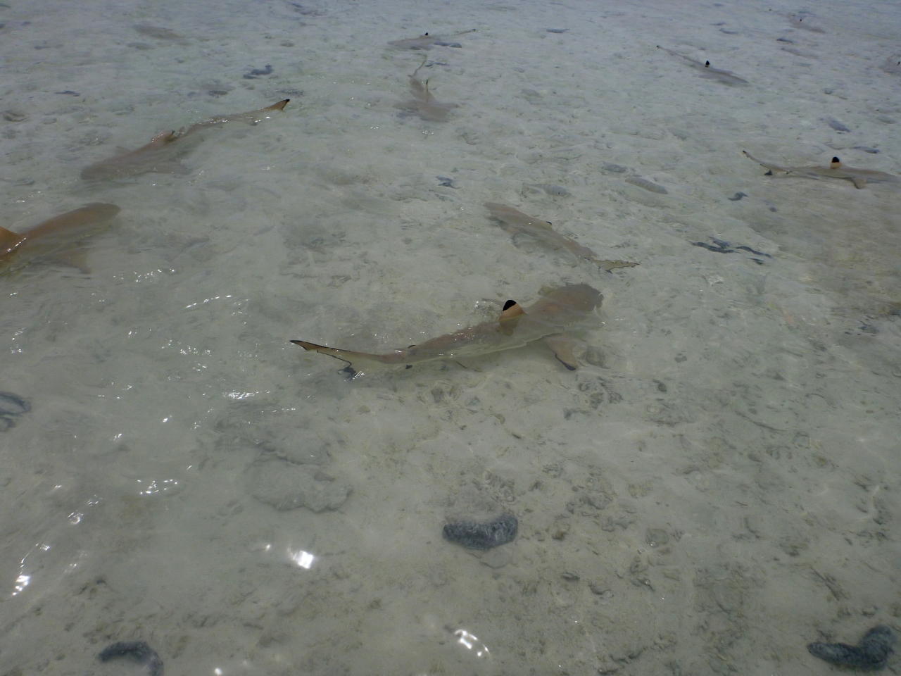 また、この環礁内には鮫の子供が沢山いて、浅瀬までやってきます。小さいので全く怖くありませんが、小さいうちはこうした安全な場所で育って、大きくなったら外洋に出て行くのでしょう。