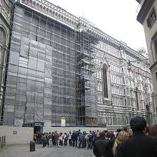 クーポラにのぼるためにドゥオモの中に入ったのですが、クーポラへの行き方がわからず…。一旦外に出て、警備員に尋ねるとクーポラ専用の入り口があるとのこと。言われた場所へ行くと長い列ができていて30分以上待つはめに・・・。