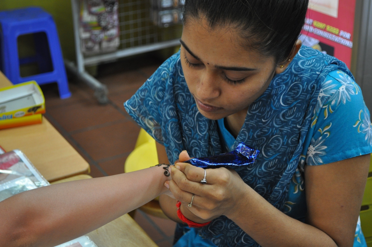 手首や足首などにチューブ入りのヘナでささっと描いてくれるのだ。