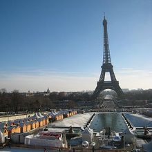 エッフェル塔をバックに、クリスマスマーケットを楽しむ
