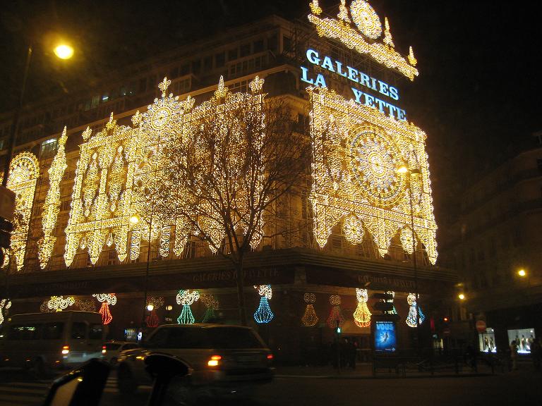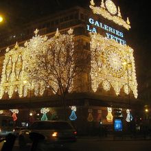 クリスマスシーズンになると、ギャラリーラファイエットの周りもライトアップされます。お隣のプランタンも同じようにライトアップされます。買い物するのもよし、ライトアップを見にくるのもよし、冬限定の楽しみ方ができます。