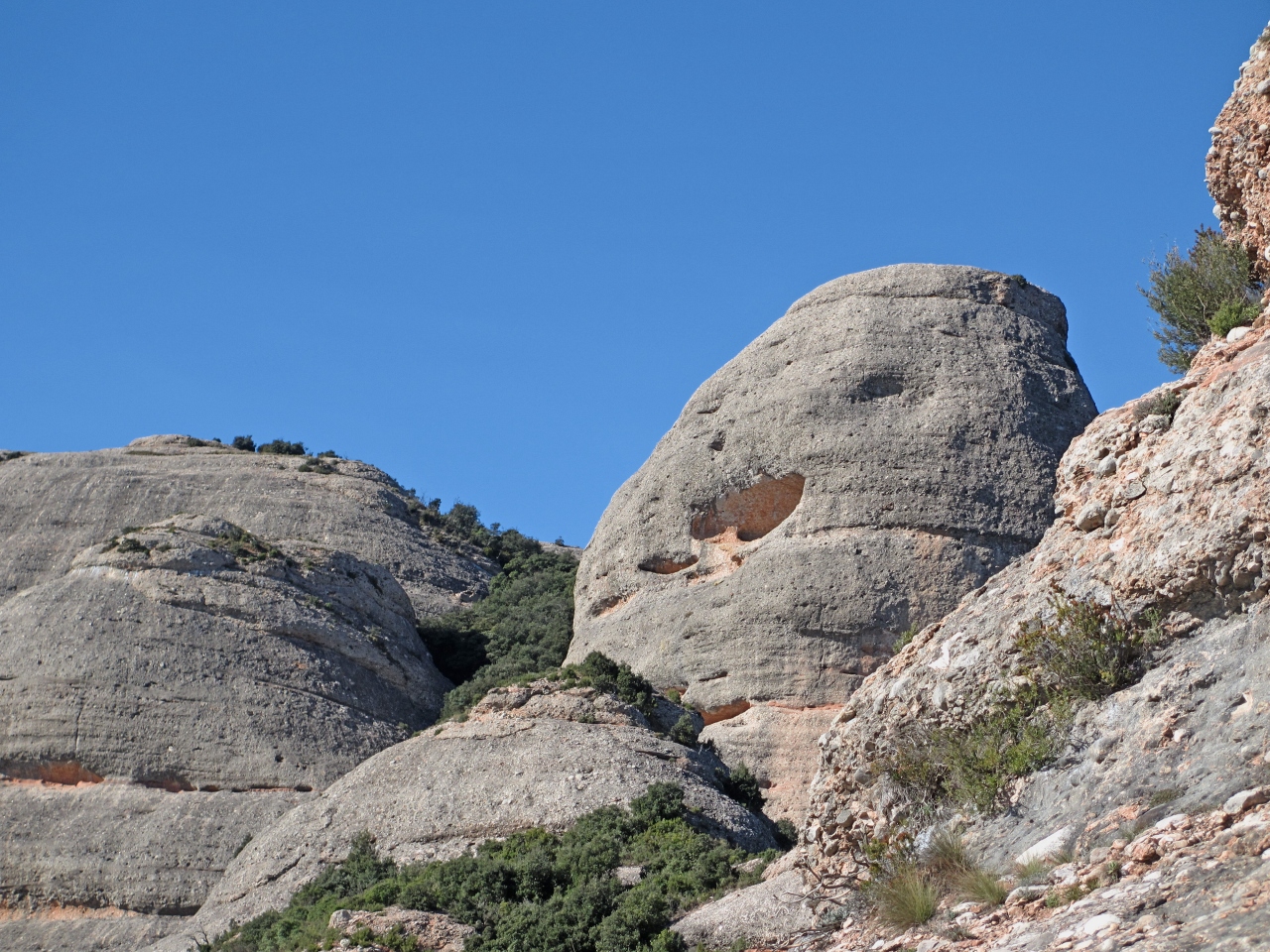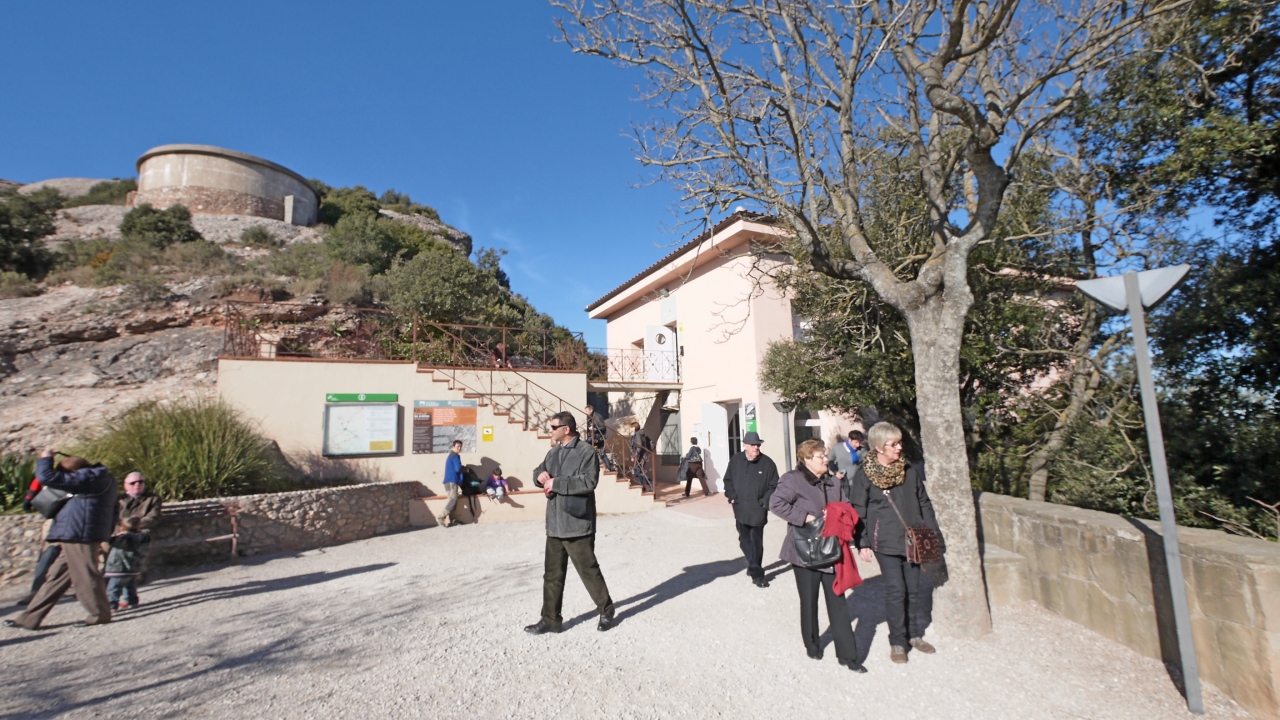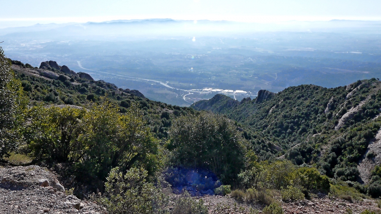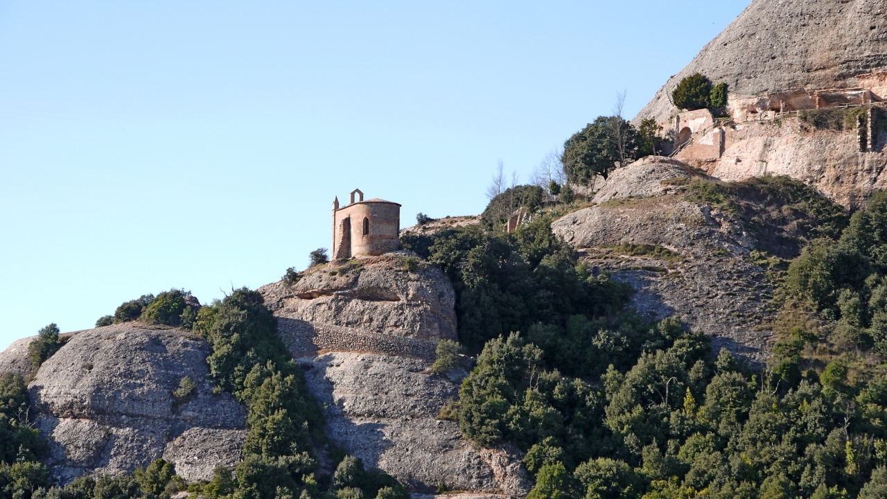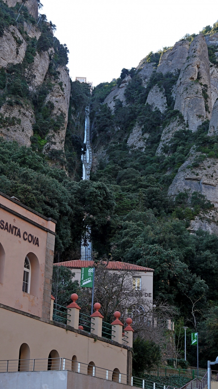 修道院のわきからFunicularで登る.往復8ユーロ.数分で登るがそこからの景色は絶景.小さなSan Joan教会もいい.遠くバルセロナ方向まで遠望できる.教会までゆっくりあるいて15分くらい.ここから修道院まで下るハイキングコースもあった.南斜面で1/1でも晴れていると汗をかくほど暖かかった