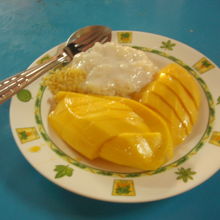 夜8時過ぎたくらいに行きました。豚の串焼きのようなもの、10本40バーツ。あとはカオニャオマムアン(マンゴーともち米)60バーツを食べました。子供が1人でマンゴー食べていたりして、治安も悪くないようです。1人でぶらぶらしていましたが、特に問題ありませんでした。初めてだったので、何を売っているのかさっぱりわかりませんで、わかるものを頼みました。有名なバーミー屋さんはわかりましたが、持ち帰る人もたくさんいて混んでいました。初心者でも何とかなる屋台でした。