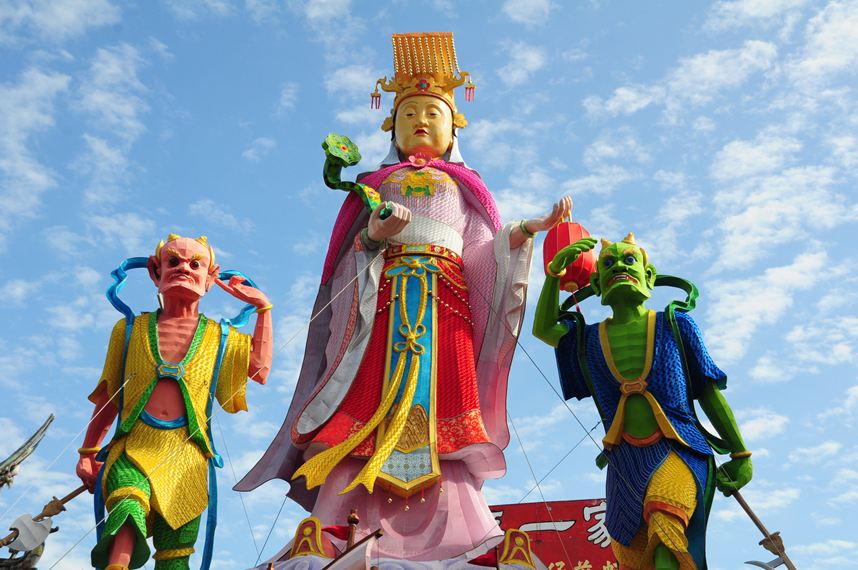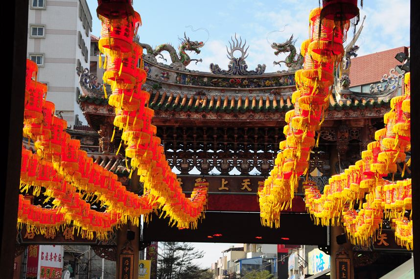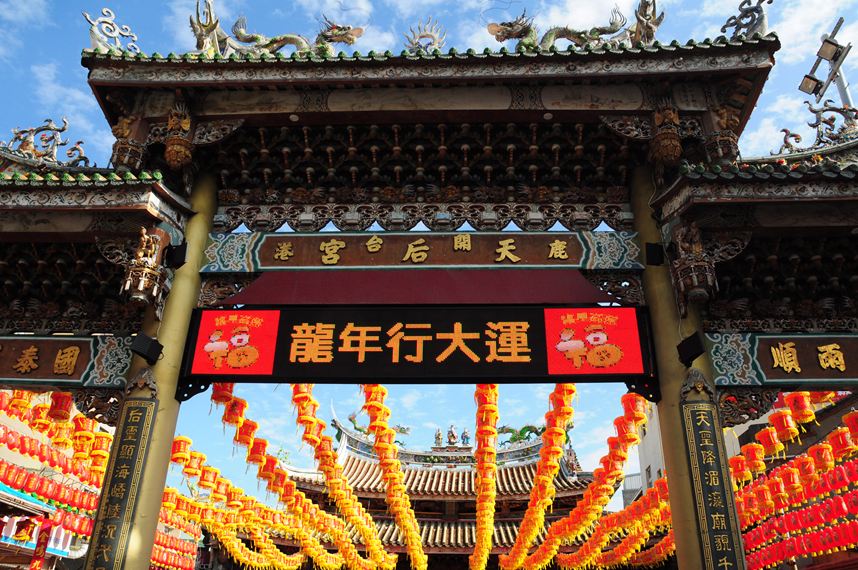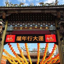 お寺の入り口付近には媽祖をかたどった