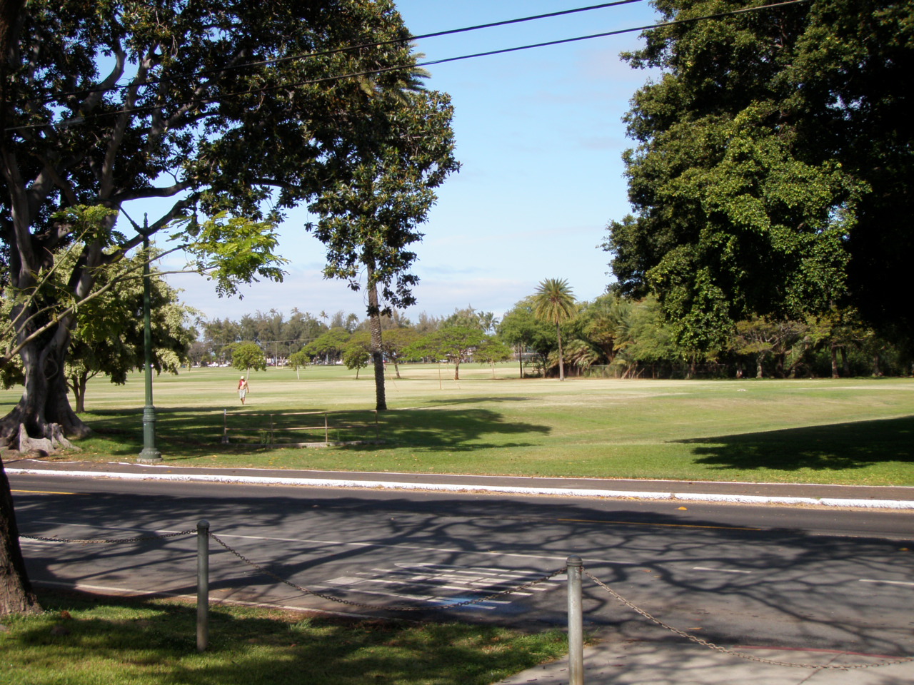 緑が多く、その中にワイキキビーチの青い海と空が見えリラックスできました。