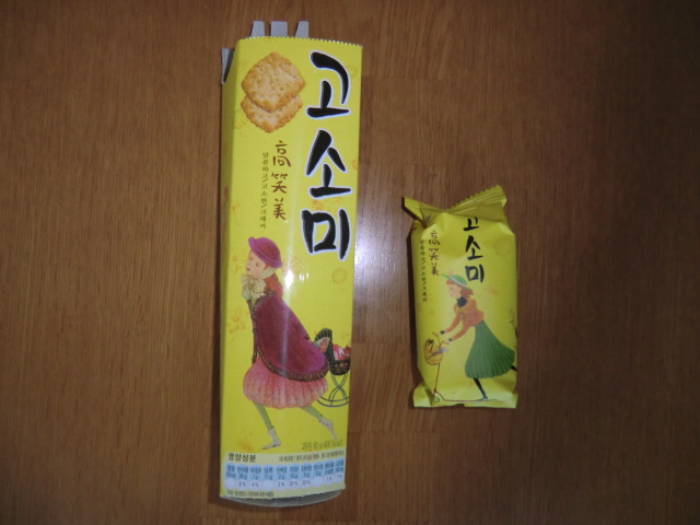韓国人はまとめ買い物をするようで、皆大きなカートに一杯商品を入れています。当然、レジでも時間がかかるので、余裕を見て並んだほうがいいですね。少数の買い物の場合はスピードレジを使うことです。日本人がよく買うノリなどには日本語で説明があるのですが、どう見ても別のものなのに同じ説明だったりとちょっと怪しいところも。お土産にはなりませんがヌリンマウルマッコリという生マッコリと惣菜売り場のジョン(ちぢみ)はオススメです。ただ生マッコリはガス抜きのため蓋に穴が開いているので、持ち帰る時には注意が必要です。ジョンはキノコ入りのが好きなのですが、残念ながらここ最近は売っていませんでした。それから今回何気なく買った「高笑美」(コソミ)というサブレは思いがけず美味しかったです。