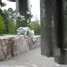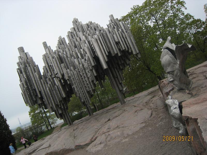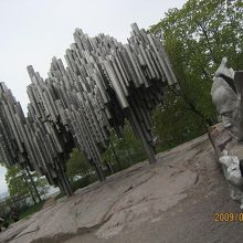 公園に行くと、フィンランドの作曲家ジャン・シベリウスの顔のモニュメントに、パイプオルガンのような丸い筒のかたまりがありました。