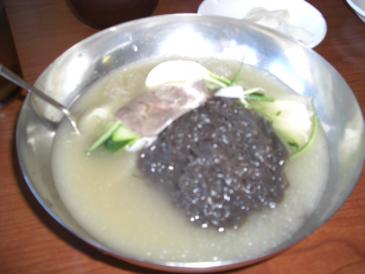 あっさりした味が恋しくなったときのために行きたかったお店。中途半端な時間に行ったのでお店はガラガラでした。夜に備えて軽めにしようと冷麺を食べました。噂どおりシャリシャリしたスープと固すぎない麺がすごく好みでした。韓国らしく付け合せのキムチなお3皿ほどもついてきました。辛い冷麺のほうも「辛いよ」と店員さんに言われましたがスープが付いてきて薄めて食べることもできます。次回はカルビなどお肉も食べてみたいです。