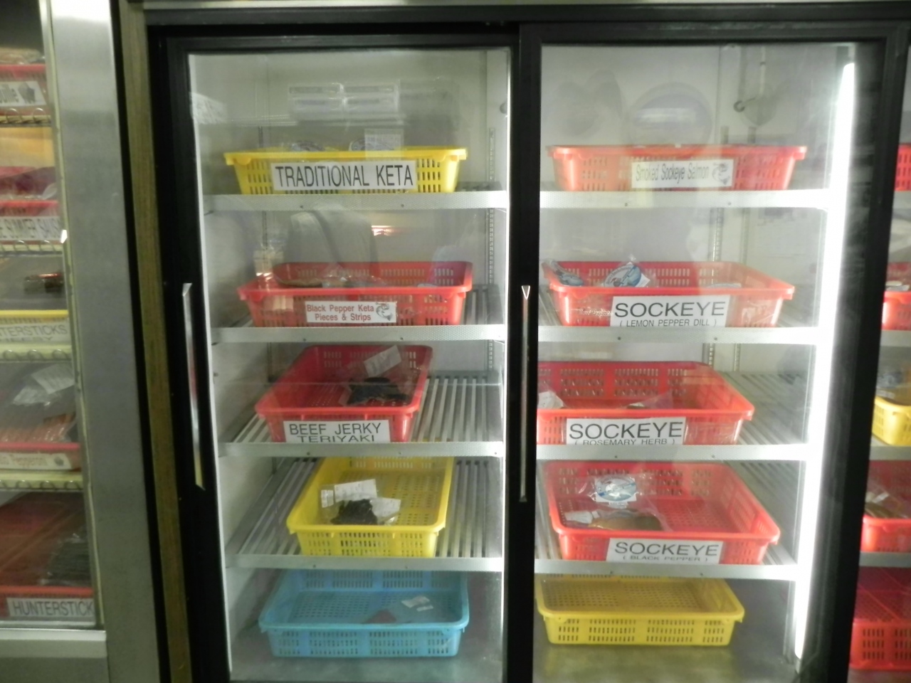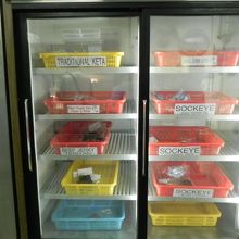 小さなお店ですが、お店にはキングサーモン・紅サケ等等、、