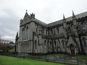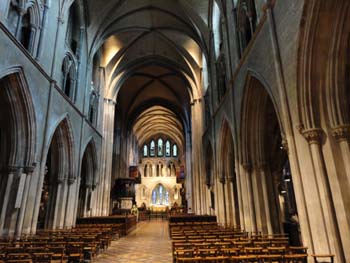 大聖堂に隣接している公園にかつてあった和泉で、聖パトリックはキリスト教への改宗者を洗礼したと伝えられています。そのため、5世紀以降、この場所に教会が建てられました。1191年になってノルマン人がその教会を石造りにしました。その後13世紀に改築された教会が現在のものです。ステンドグラスに彩られた窓の下には大きな石像が鎮座しています。壮厳なそれでいてとても落ち着ける雰囲気はどこからきているのでしょう。