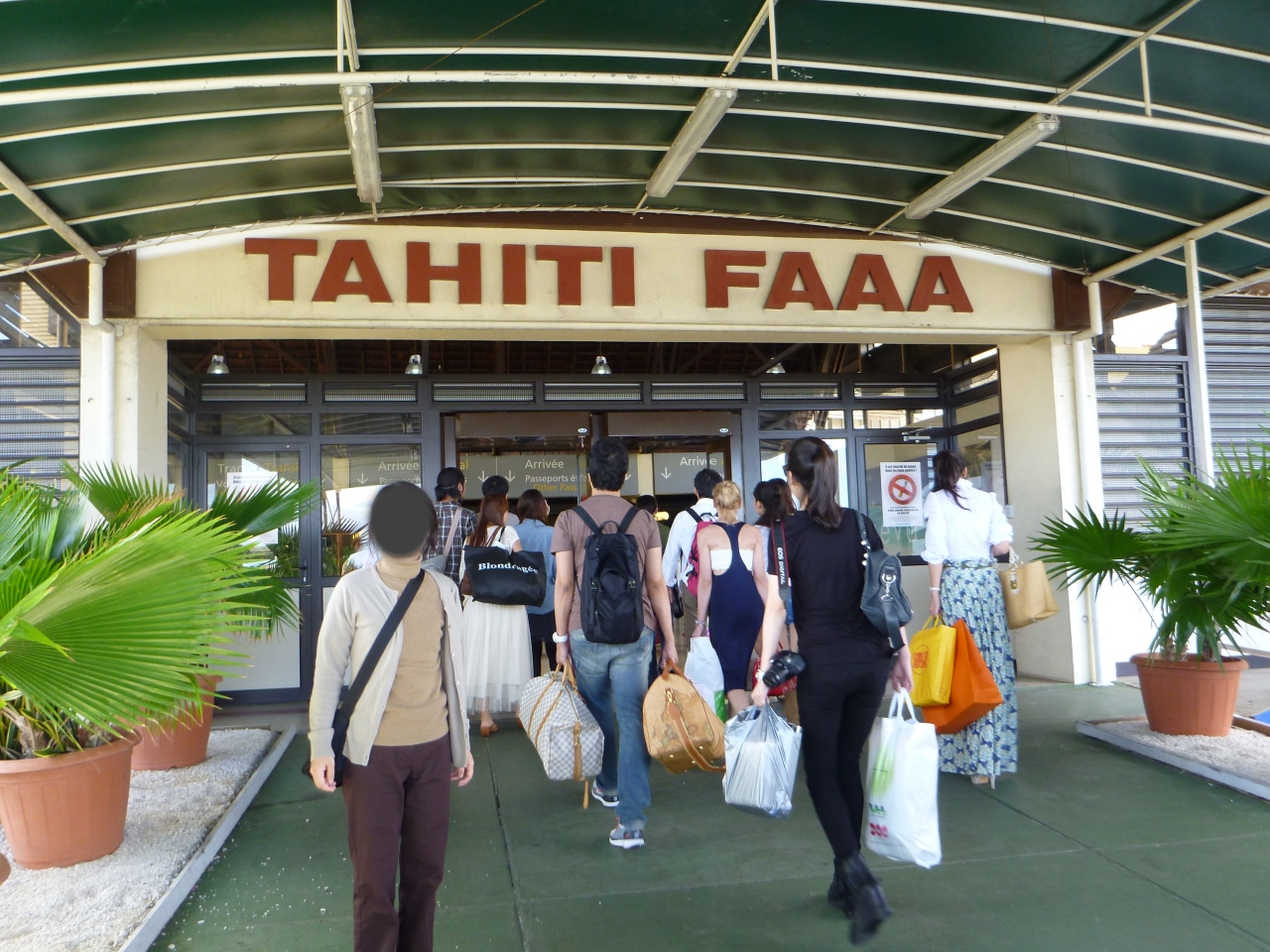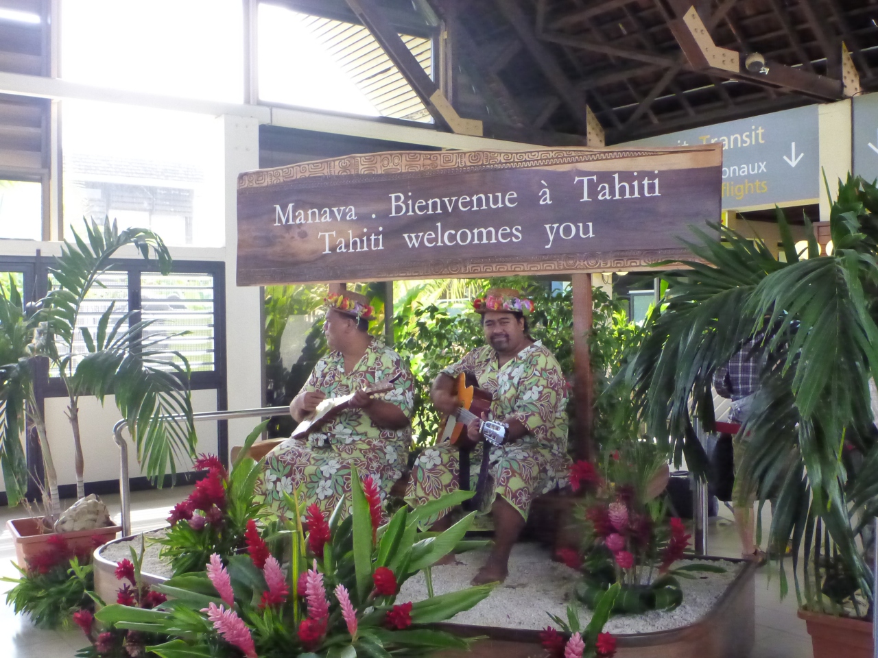 タヒチの玄関口はここパペーテ国際空港になりますが、到着するとティアレの花のレイとウクレレの生演奏で迎えてくれます。ティアレの花のレイは国内線乗り継ぎの場合は、乗り換えの際に検疫ですぐ取り上げられてしまいますが(苦笑)。