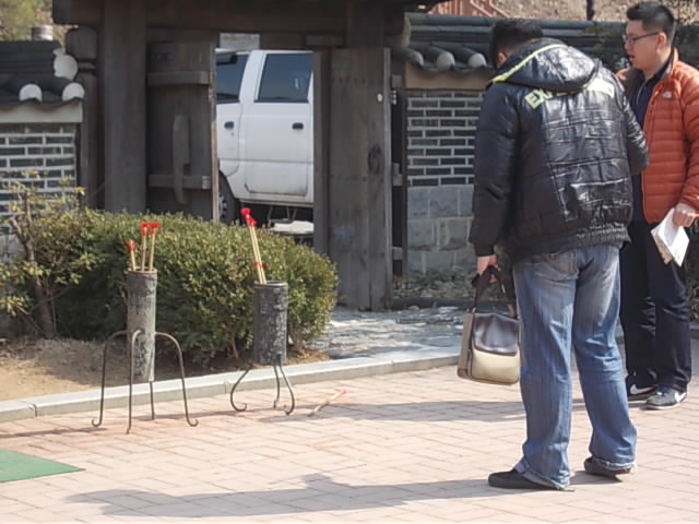 全州は韓国でも有数の歴史ある町ですので、伝統工芸も色々と発達しています。ここでは、それらの展示が分かり易くユニークに表現されている他、有料・予約制にはなりますが、絵付けなど、実際に伝統工芸の製作を楽しむことが出来ます。また、屋外では矢のようなものを投げて筒に入るかどうかを競っている若者達で盛り上がっていました。これも全州独特の占いのようなものだそうです。