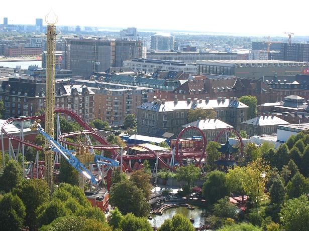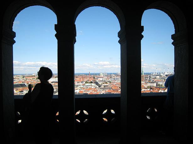 時計下の展望台からはチボリ公園内のアトラクションやラウンド・タワー(円塔)、遠く離れたスウェーデンのマルメへと続く海に架かる橋等、コペンハーゲンの街並みを一望でき、のぼったかいがありました。