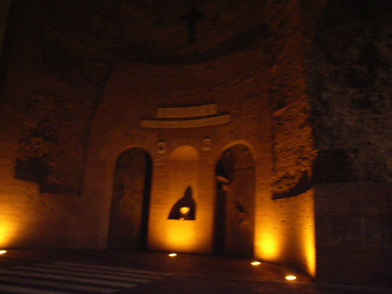 といのも、ローマ時代の遺跡を改修して造られた教会ということでした。宿泊したホテル・エクセドラの正面にありましたので、空いている時間に行ってみましたが、ライトアップされた外壁がとてもきれいでした。昼はローマ時代の遺跡と、全く違う顔を見せてくれる珍しい教会です。