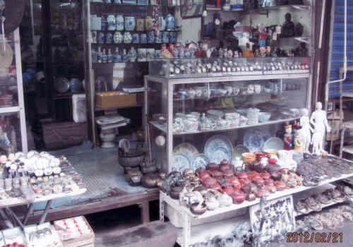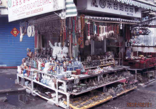 中国五千年の歴史あり。上海博物館へ行くと沢山の宝物が展示されています。偽物も五千年の歴史があります。作って一度土に埋めたり、古く見えるような塗料を塗ったり、偽骨董品が沢山並んでいます。国宝級の物がここに並ぶ事はありません。最初から偽物と思って、気に入ったもの、納得出来る価格でお買い求め下さい。「東台路古玩街」は両側に屋台のような小店が並んでいます。外国人(欧米人)も東洋の骨董品が大好きで計算機片手に英語で値切っています。ディスカウントプリーズです。