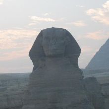 ピラミッド群の正面にあるチケット売場周辺からでもスフィンクスを見ることができます。スフィンクスのちょうど真向かいには土産物屋が一軒あり、ポストカード等が売られていました。また、その近くのケンタッキーの上階からでもスフィンクスと向き合えます。