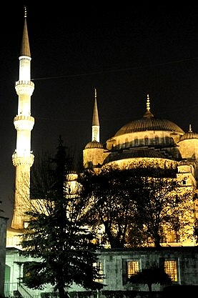 冬にはライトアップされないと聞いていましたが、2011年12月上旬の8時過ぎには金色に照らし出された夜景が見られました。アヤソフィア博物館も同様でした。