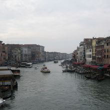 橋の上からは、ゴンドラや水上バスなどが運河を行き交い両岸には中世風の建物が並ぶ、ベネチアらしい風景が見れます。