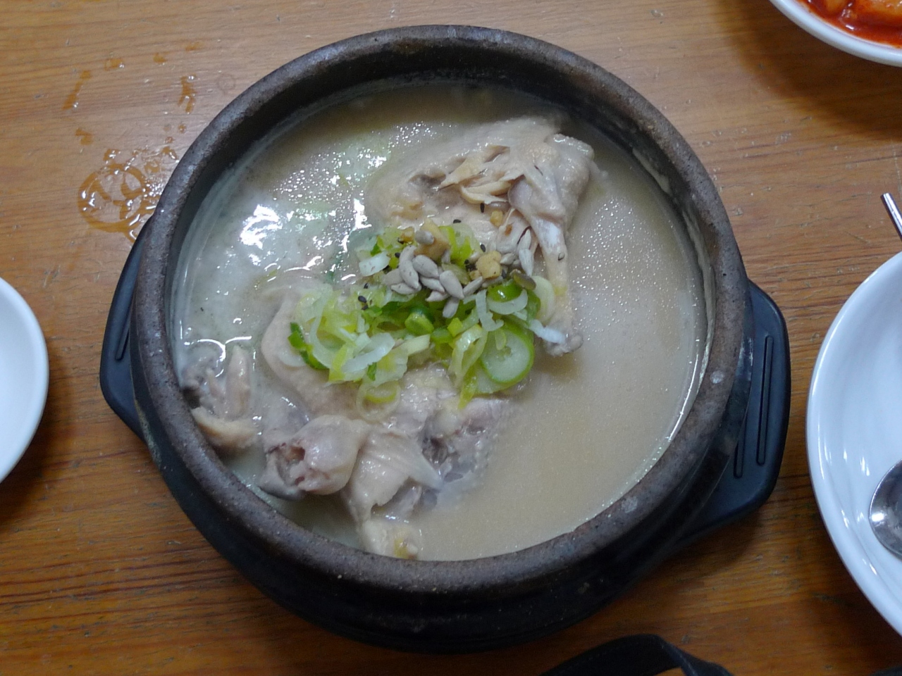 参鶏湯が来るまでキムチをつまむ。ここのカクテキは辛くて美味しい。