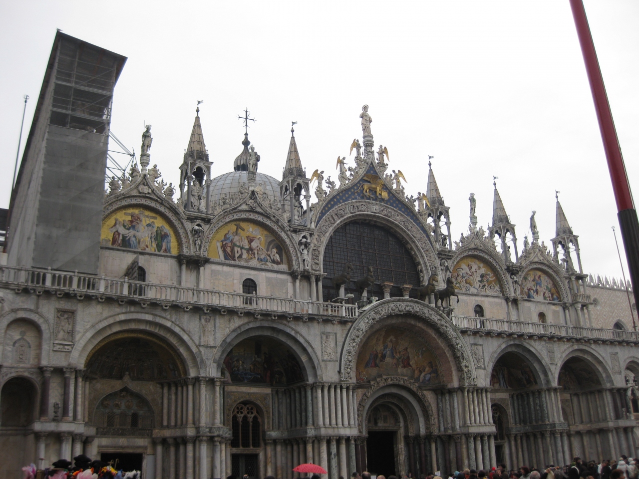 正面のアーチにあるモザイク画や、天井、壁、床がモザイク画で飾られ内部の壁一面を覆う金色を基調としたモザイク画は、見ごたえがあります。