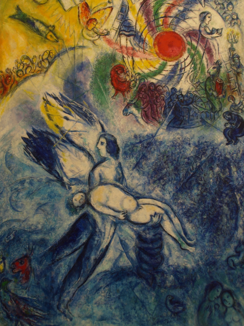 ニースに行ったら絶対シャガール美術館に行こうと決めていました。ところが、当日朝、マセナ広場近くのシャガール美術館方面へのバス停で待っていると、昨日までとは違った雰囲気。いつもはたくさんバス停に人が並んでいるのに今日に限ってガラガラ。「なんかおかしいな、ひょっとして!?」と思っていたら、5分も待たないうちに親切な地元のお兄さんが、「グレーブ」と言って手で×印。「GREVE」、つまりは、ストのこと。このままいくら待っていても今日はバスは来ないのであわててニースの地図で美術館の位置を確認すると、ニースのメインストリートを北上して線路にぶつかる辺りで駅と反対側の右へ行きしばらく行った所にあるようで、これならがんばれば歩けると判断。(数日前にニース駅まで歩いたので地図上はそれプラスアルファぐらいの距離と推測)結果、30分ほどで到着しましたが、確かに頑張れば歩けるという程度で、あんまりお勧めはできません。と言うのも、地図ではわからなかったのですが、美術館は少し高台にあり、結構高低差があり、しかも線路越えも重なり、予想以上に疲れました。途中の街並みも別にきれいではないので、やっぱりバスかタクシーで行く方がいいと思います。美術館はもちろんすごく良かったです。シャガールワールドが広がっています。