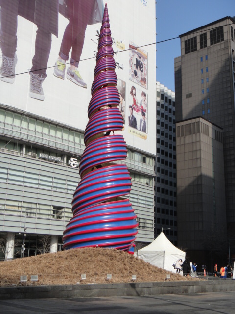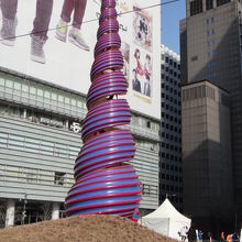 以前は上を道路が走り、暗渠になっていたのを戻したそうです。夏は水遊びをする人でにぎわうようですが、あいにく冬なので人気は少なめでした。貝殻みたいなモニュメントがあり、記念写真をとってメールで送れるようになっています。