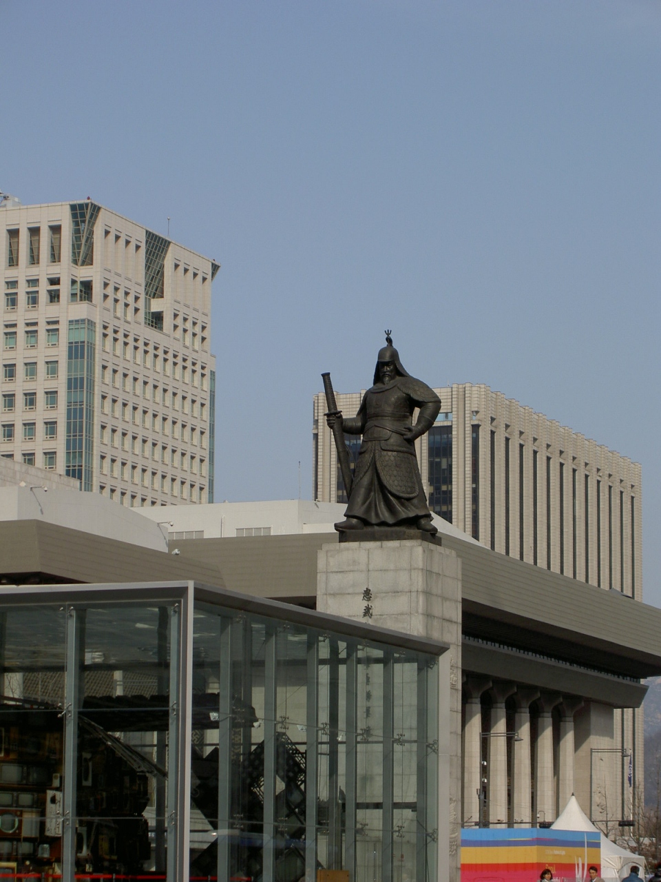 キョンボックンの光化門(工事おわっていました!)までどーんと広がる広場です。イスンシン将軍や世宗大王の大きな像が並び、時々集会もやっているようです。周辺には教保文庫や劇場、大使館や新聞社などが立ち並んでいます。