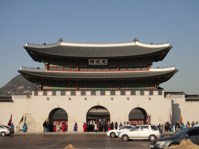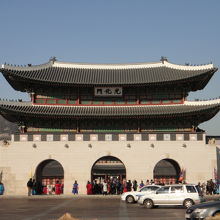 2006年から再建工事に入っていましたが、2010年に元の位置で復元工事が終了しました。キョンボックンの正門として位置づけられ、額は以前のハングルでなく、漢字で書かれています。キョンボックンの衛兵交代式もこの門を通って行われるようになり、スケールが増しました。