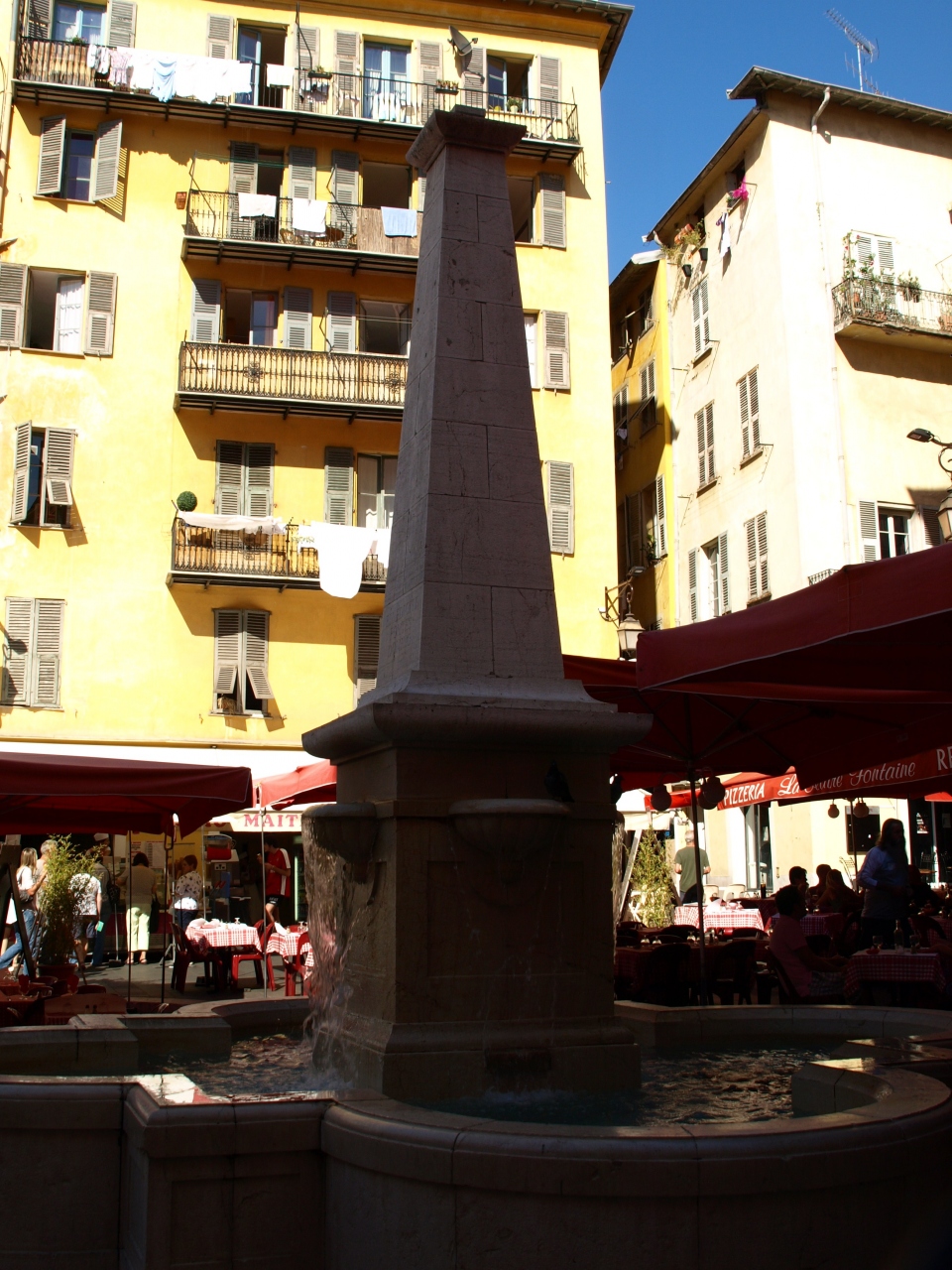 ロセッティ広場はニース旧市街にあるサン・レパラート大聖堂前の広場でそれほど大きくはないですが、細い路地と両側にびっしりと建物が立ち並ぶ薄暗い印象の旧市街では、ひと際明るく、風通しのいい場所になるため、多くの人がここでのんびりしています。また、サン・レパラートはニースの守護聖人で、10月初旬(確か10日だったと思う)は聖レパラートの日で、この広場ではニースの民俗衣装を着た人たちが集まりダンスを行う祭りが開かれます。この時期ニースに観光に行く人はぜひ訪れてみてください。