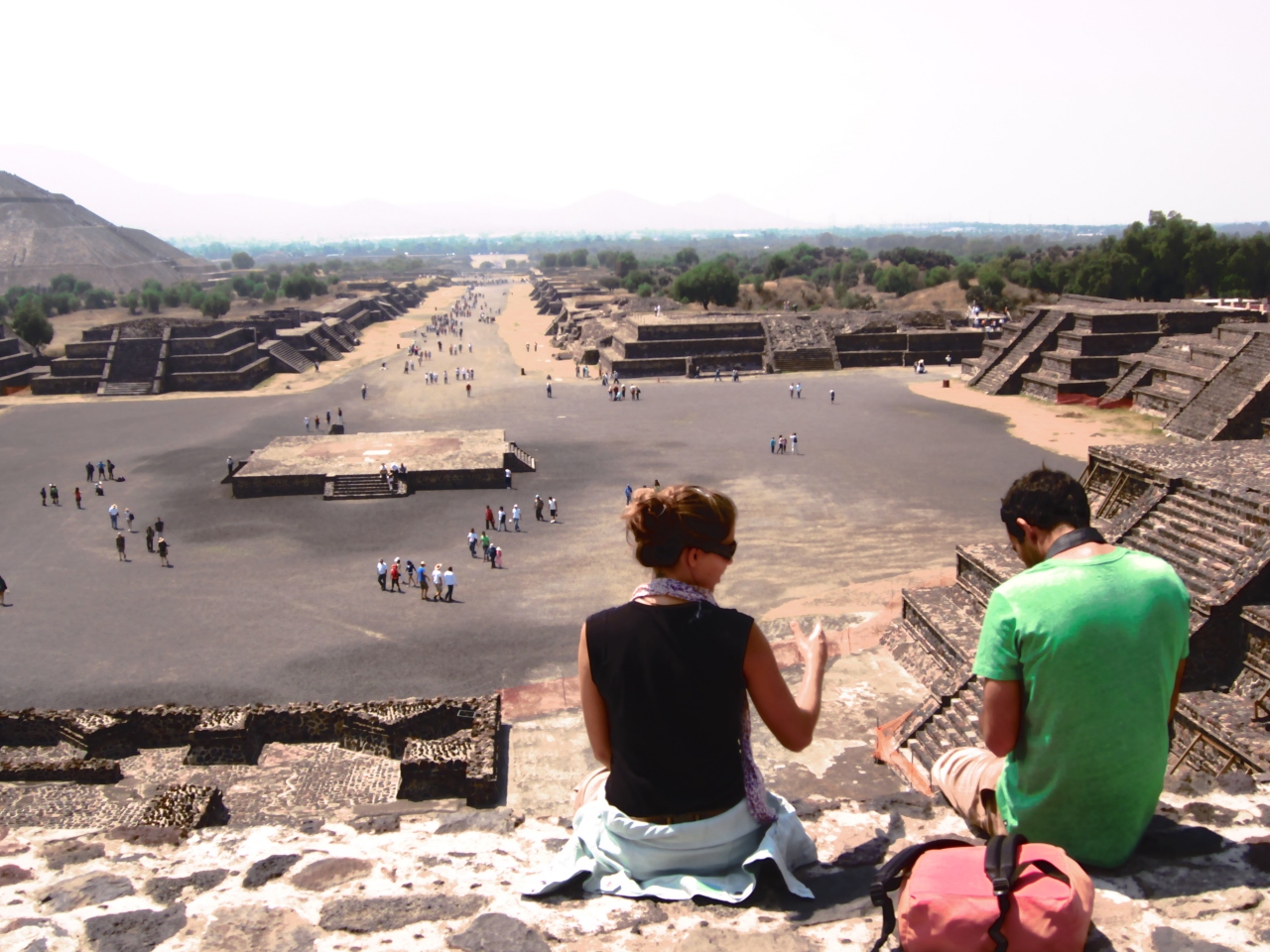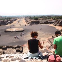 太陽のピラミットより小さいですが高さは同じだそうです。こちらは頂上までは登れませんが月のピラミットから死者の道に続く道がまっすぐ続いている景色を一望できます。