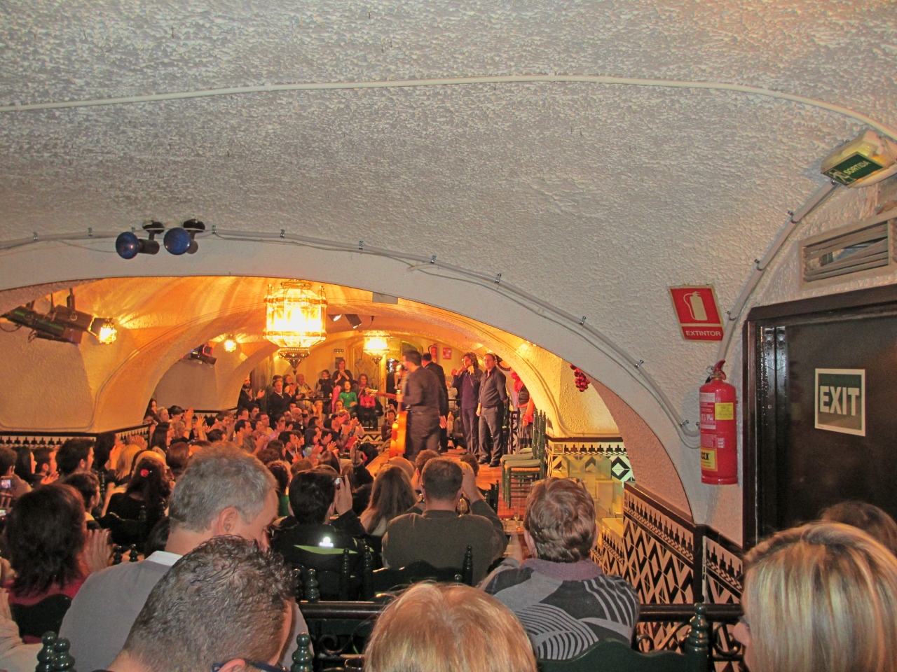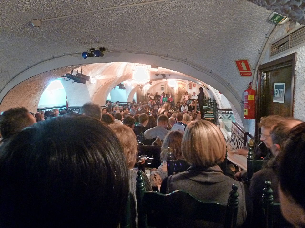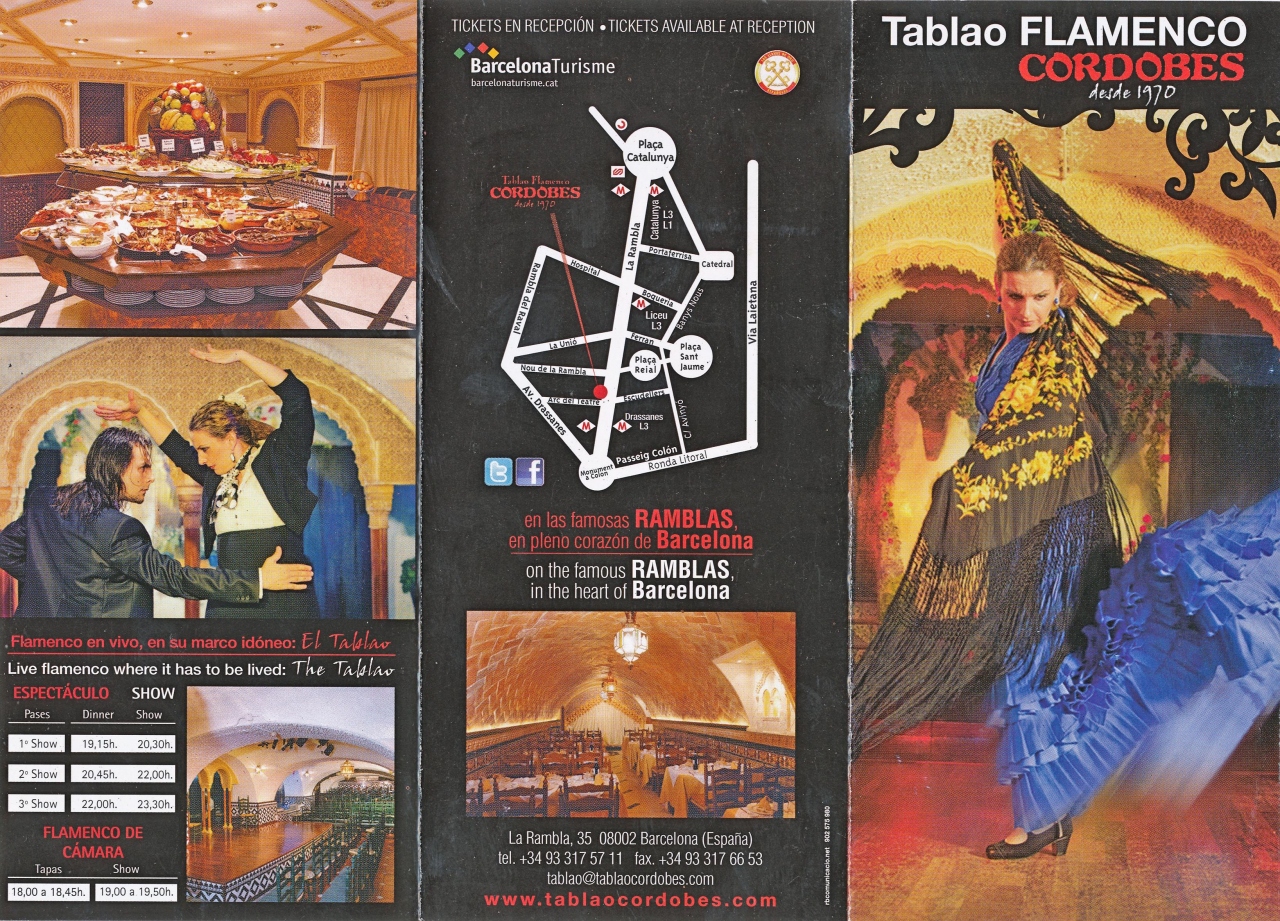 バルセロナでは一番質の高いフラメンコを見せるという評判の店.確かに踊りの水準は悪くない.洞窟のようななかで前のほうは迫力で楽しめるが,私たちは当日日本語案内センターで申し込んだため一番後ろ.日本語案内センターで「後ろの席ですこしみにくくてもいいですか」と聞かれた真の意味が解った.明日だと前の席が取れるので明日のほうがいいですよという意味も.そのためあまり迫力も伝わってこない.でもそれは我慢できた.問題なのはショーの短さ.あっという間に終わる.正味1時間.最後の10分くらいが写真撮影が可能.夏にSevillaのEl Arenalでは1時間30分あり,長かったし,踊りもたくさんありすごかった.フラメンコについては詳しくないが正直観光ナイズされていて失望した.単に後ろの席だったからではないと思う.そのくらい,Sevillaのタブラオ El Arenalについては迫力もあり,非常に印象深かった.