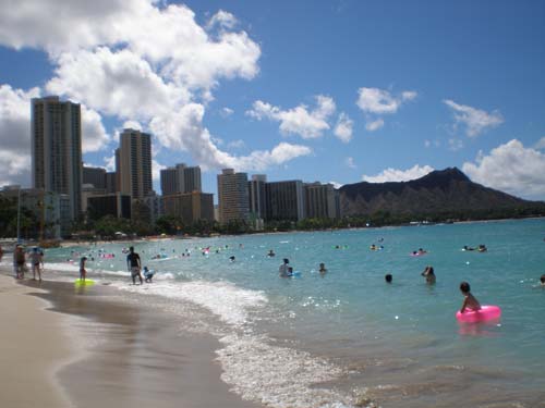 ワイキキビーチ 海と街が隣り合わせで大人も子供も楽しめる