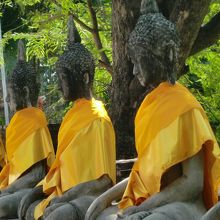 黄色い衣をまとった、何十体もの仏様の並ぶ姿をみると、心が落ち着くんですよね~!
