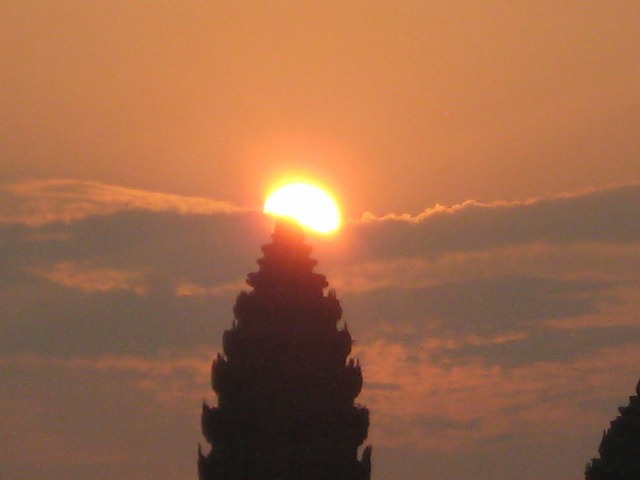 1年に春分の日と秋分の日の2回だけ、アンコールワットの塔の頂上から日が昇ります。