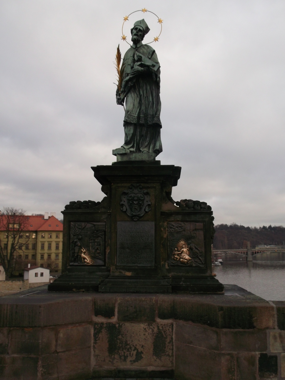 カレル橋の特徴でもある両側に並ぶ聖人像が目を引きます。
