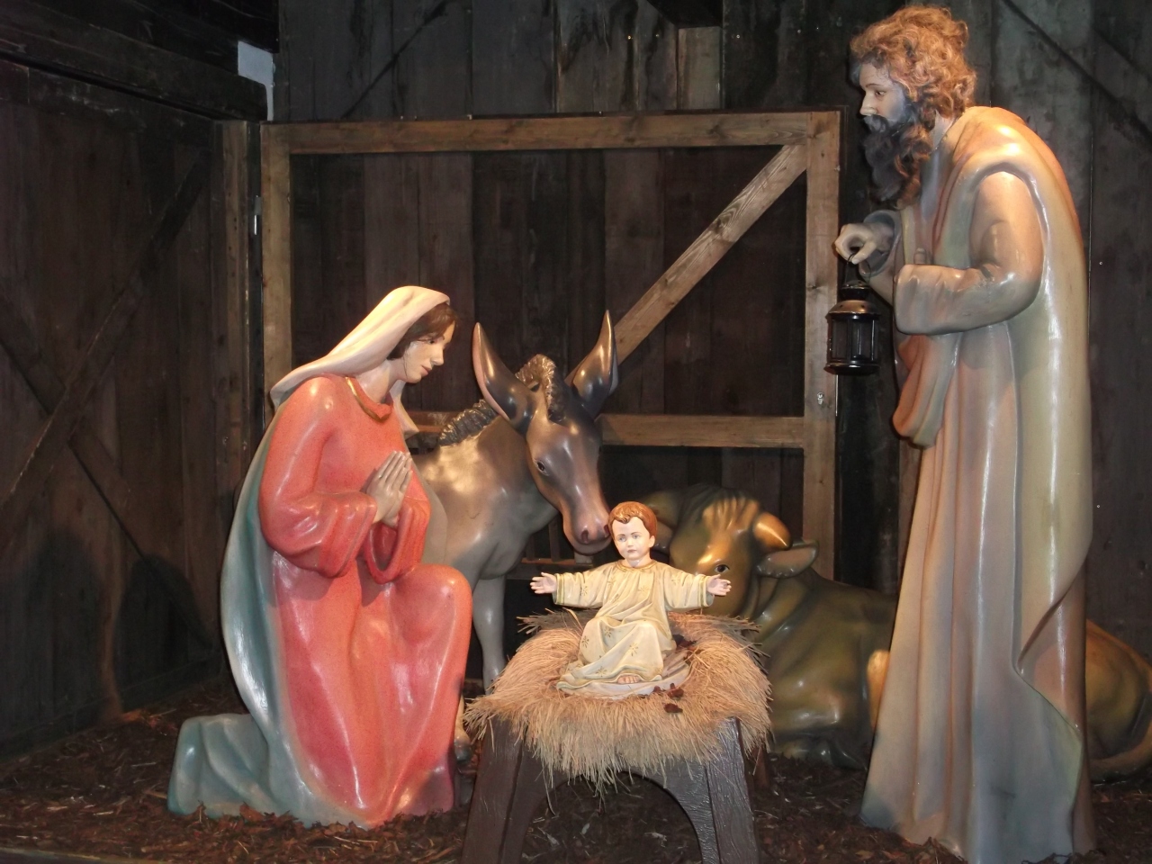 出店や屋台とライトアップされたクリスマス・ツリーなどが