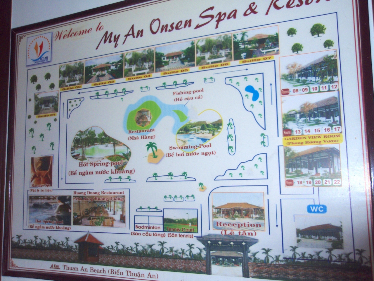 フエの郊外にある温泉リゾートです。リゾートといってもかなりカジュアルです。日本の国民休暇村か国民宿舎ってかんじ。お庭の中にプールのような温泉が3箇所。日帰り施設もありフエ市内からもタクシー使えば気軽にいけます。私は宿泊で利用しましたが、水着で利用できる温泉は白濁した本格的なもの。残念なことに2日目雨でしたのでお湯が薄まってぬるくなってしまったことかな。地元の人も利用するようで、マッサージ屋食事などかなりリーズナブルなのもよかったです。宿泊棟は温泉の出る古民家風の部屋と新しい部屋(温泉はでないですがバスはあります)がありますが、狭くても新しい部屋のほうが快適にすごせます。