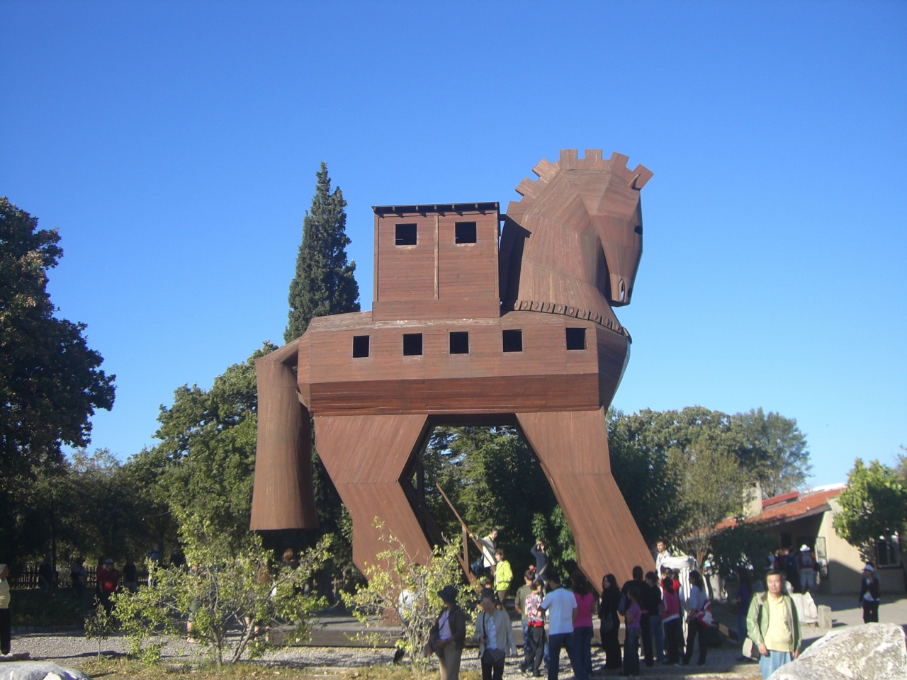 中に人が入り、戦に勝利したという伝説の「トロイの木馬」はこんな感じと解りましたが、出来立てみたいに新しく見え、大きなおもちゃのようでした。