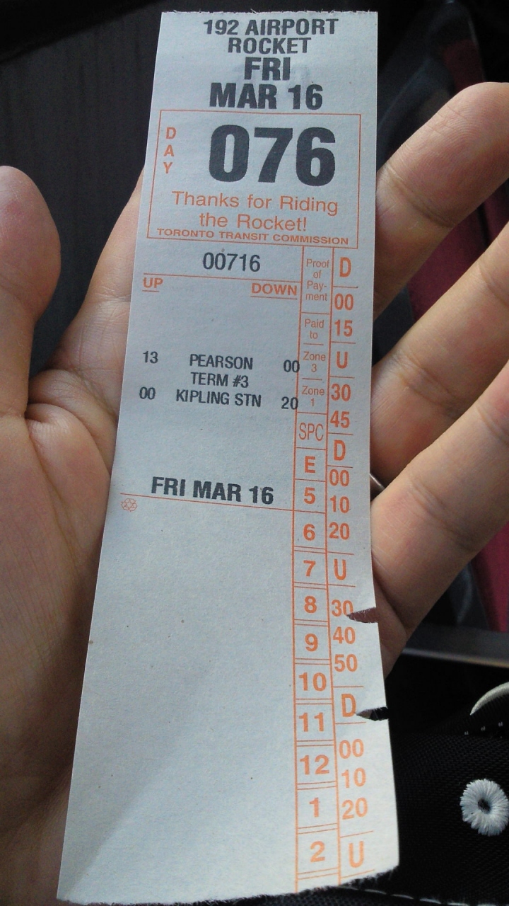トロントピアソン空港とトロント市内の移動で、バスを乗り継いで利用しました。