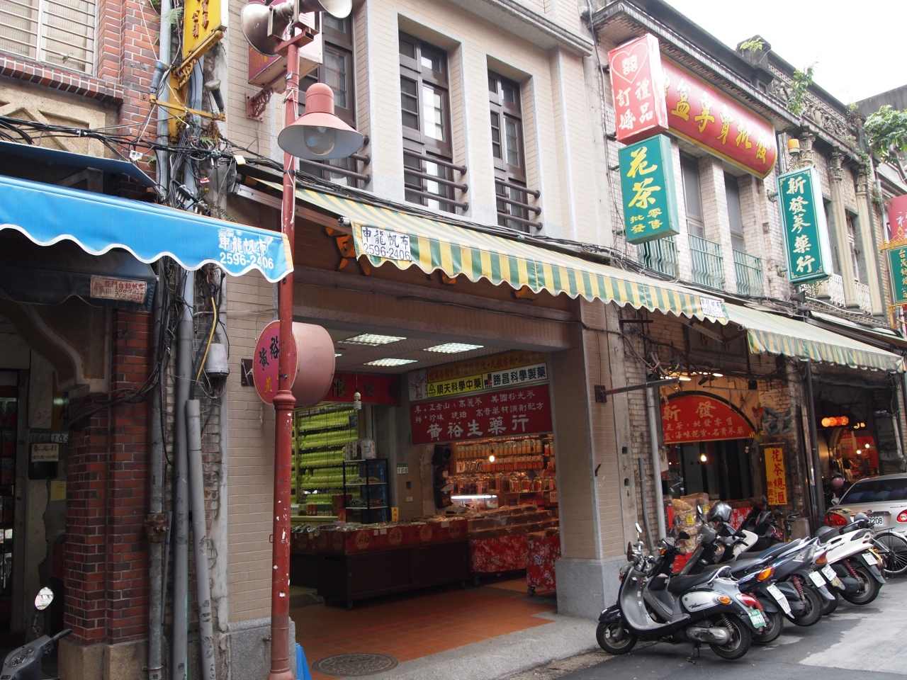 中心の通りにはからすみなどの乾物、お茶、漢方薬などの店があり、