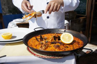 コンドミニアムのスタッフお勧めのパエリャがおいしいお店!マルベーリャの海岸通沿いにあり、立地は最高!キラキラ光る地中海を見ながら食事が楽しめます。お店は、パエリャ専門店ではなく、シーフード料理のレストランなので、メニューを見ると高級なメニューがズラリと並んでいます。シーフードのパエリャをオーダーしましたが、濃厚なブイヤーベースのパエリャみたいで、味に深みがありおいしかったです!